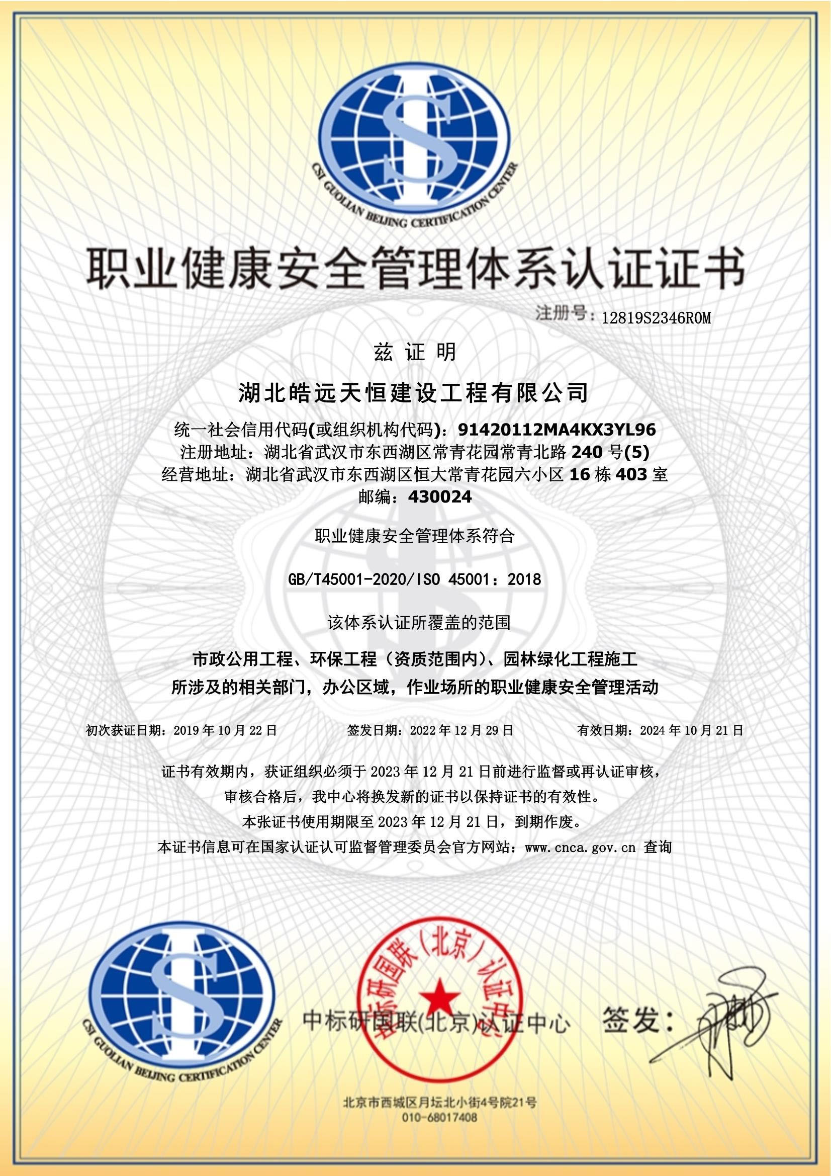 三体系职业健康安全管理认证